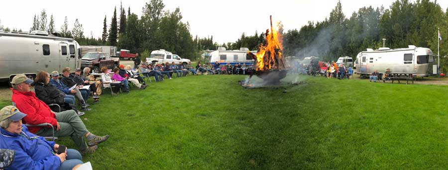 Drivers meeting and bonfire in Kenai Peninsula campground in Alaska.... | ![]() |