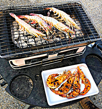 Split along the dorsal spine and marinated with olive oil, garlic and white balsamic reduction these U12 Gulf shrimp were caught locally off the shores of Louisiana and bought for $6/lb at the dock. Firing up the Yakatori earthenware grill with either mesquite or hickory to add a smoky taste and a memorable dinner.