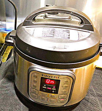For inside cooking we turn to our Instant Pot to create hearty soups, stews, and a variety of chicken and beef dishes. One of the most frequently used kitchen tools is a cheap metal toaster that sits over the propane ring while keeping a watchful eye to avoid smoke alarm distress! Recently we added a mandolin for very thin slicing of vegetables, fruits and meats, and a Braun immersion blender/whisk to make smoothies, mashed potatoes, pureed soups, meringue and sauces. And we can’t manage without coffee! Using store ground decaf beans, our espresso maker gives two shots of rich coffee to which we add hot almond milk from our electric frother for a perfect cappuccino. Lastly the microwave is used essentially to steam vegetables, just add ½ inch of chicken stock and seal your dish with Cling to give you perfect veggies in three to four minutes.