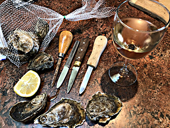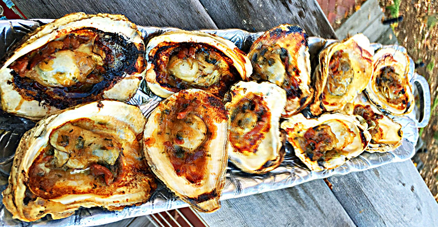 A focus on oysters requires a little more insight. We basically love petite raw oysters that come from briny ocean sources such as Malpeque in PEI, Hog Island in California, Old Salts from Chincoteague Virginia, Blue Point from Long Island Sound and Kumamoto from the West Coast. We have several sets of oyster knives on board and shuck and serve with just lemon juice or with a white balsamic vinegar and finely chopped shallot mignonette. The bulk of oysters more widely available are usually of the larger variety more suitable for grilling. We usually buy two dozen in the shell and put them on the grill and let them open naturally as the internal liquid turns to steam which takes ten minutes or so. Meanwhile we prepare a dressing of melted butter, finely chopped shallots, parsley, chopped proscuitto and white vermouth and drop a spoonful into each open oysters and allow the cooking process to continue as the oyster shrivels and becomes a tasty charbroiled treat served on the half shell. Every region has different oysters but we find a way to enjoy them all and bring out the best.