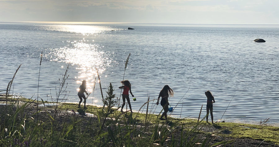 A family of four young girls take a walk along the St Lawrence river late afternoon.... | ![]() |
