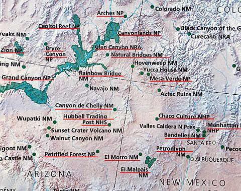 ![]() Owachomo Natural Bridge NP spans 180 ft near Bluff, Utah ![]() Cliff dwellings pueblos in the Mesa Verde NP and were evacuated by 1300 AD ![]() Spectacular dining in the Grand Canyon north rim lodge ![]() Durango to Silverton steam railway makes its way up the Animas River valley through the San Juan National Forest ![]() Upper and Lower Antelope Canyon provided stunning photographic experiences ![]() Glen Canyon hydroelectric dam retains Lake Powell providing a huge man made lake to explore on cruises ![]() Rafting the Colorado River on large 20 passenger inflatables down to Horseshoe bend ![]() Launching Spirit of New Mexico balloon which we rode over the sandstone hills around Gallup NM ![]() Albuquerque balloon festival features over 500 balloons in a mass ascension ![]() Balloons at dawn ascend prior to sunrise and the hot air propane gas firings provide a blast of color in the dark sky ![]() The strange spaceship stone engravings at Petroglyph NP ![]() The Zion Canyon Virgin River passes through the Narrows |
