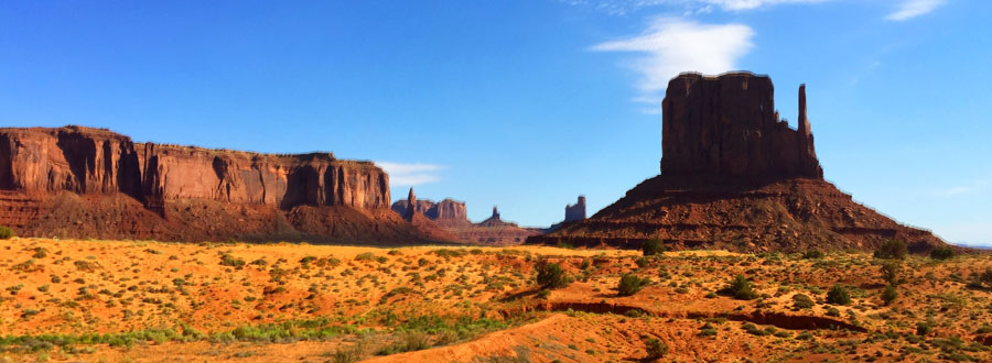 Iconic view of Monument Valley in Navajo territory which spans Arizona and Utah | ![]() |